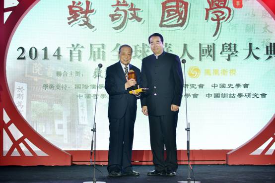 2014年7月至9月,伟德国际1946官网、凤凰网、凤凰卫视联合主办“致敬国学:首届全球华人国学大典”。7月11日下午,在中华世纪坛隆重举行的首届国学大典启动仪式上,先生与李泽厚先生等名家出席,与在场嘉宾一起启动大典,共同见证中华文化史上的国学盛事。